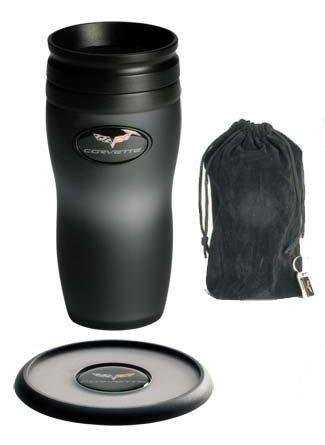 Each mug and coaster comes with a black circular C6 emblem. The tumbler is a soft touch with double walled construction and features a spill resistant lid. Holds 16 oz.